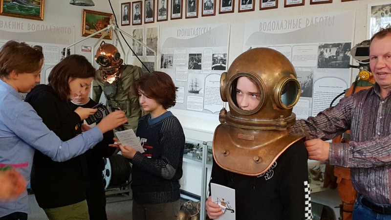 Познавательным, ярким запомнится посещение Кронштадтского Морского музея. Экскурсию проводил замечательный экскурсовод Владимир Шатров, награжденный медалью "За активную патриотическую деятельность" от Союза городов воинской славы. Он не только увлекательно рассказал об экспозиции музея, но и провел интересную игру, победители которой получили сладкий приз.